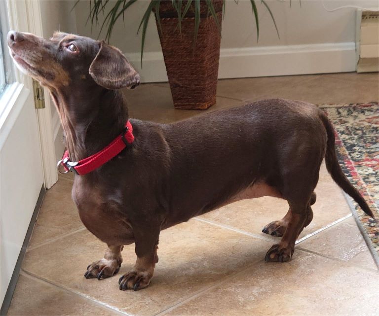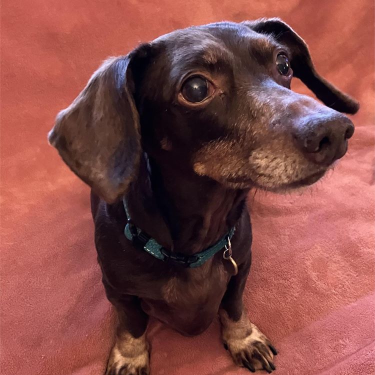 Meet Lizzy! Lizzy is an affectionate 14-lb, 11 year old little girl whose previous caregiver passed away, so Lizzy is on a quest to find her new home. To put it simply, Lizzy is “all Dachshund.” That means that Lizzy is opinionated, stubborn and cantankerous…she’s hardheaded, strong-willed and tenacious…and we certainly can’t leave out that she’s independent! And we mention those qualities in the best way. This little gal is a hoot! You will never be bored with Lizzy as a companion. She will keep you laughing and amused. Although she gets along great with other dogs, she would much sooner be with her human(s) and loves to follow her person from room to room all day long. Lizzy would be a great companion for a stay-at home person(s), a home-bound person, or to someone who can take their dog along to work. She leans toward having separation anxiety and will sometimes bark when she is not able to see her human.